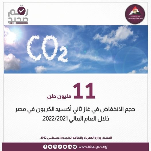 معلومات الوزراء: 11 مليون طن حجم انخفاض غاز ثاني أكسيد الكربون بمصر