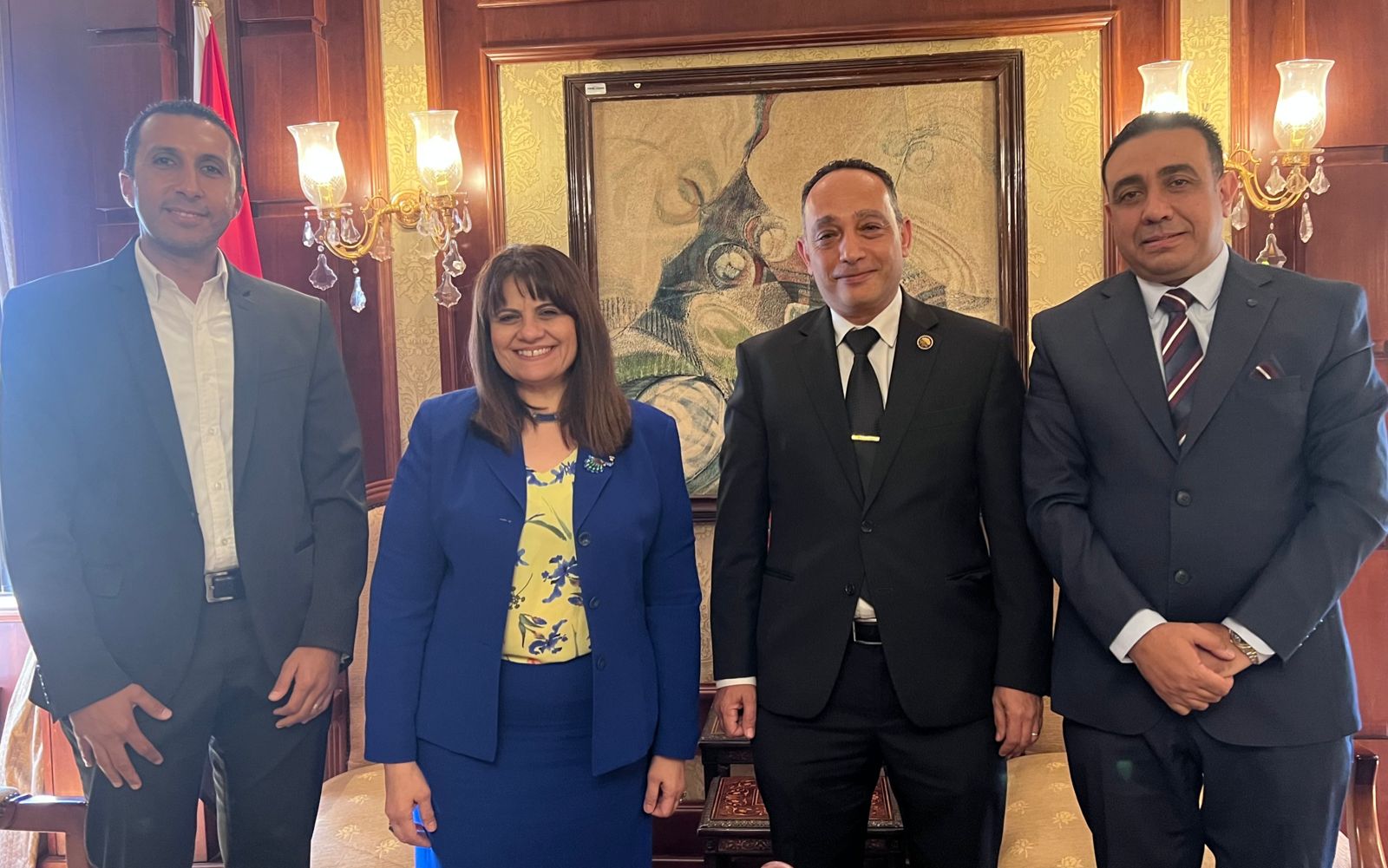 وخلال اللقاء هنأ البياضي وزيرة الدولة لشئون الهجرة والمصريين بالخارج، بالمسئولية الجديدة وناقش مع الوزيرة تحديات واحتياجات المصريين في الخارج، كما ناقش دور الحزب الديمقراطي الاجتماعي في التواصل مع المصريين في الخارج، وناقشوا أيضًا تفاصيل معرض تصدير العقارات المزمع إقامته الشهر القادم في الولايات المتحدة الأمريكية، برعاية وزارتي الهجرة والإسكان؛ بهدف تشجيع المصريين للاستثمار في سوق العقارات المصري، حيث حضر اللقاء جون جميل المدير التنفيذي لشركة إنفستجو، المنظمة للمعرض.