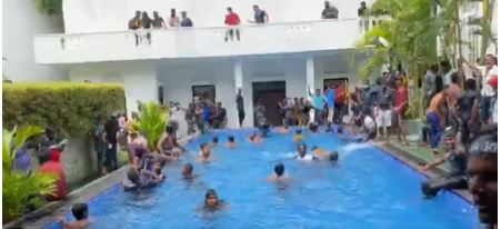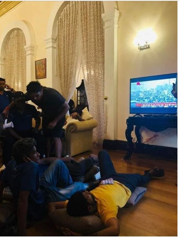 وشهدت سيريلانكا أحداثا فريدة من نوعها، حيث اقتحم محتجون ومتظاهرون قصر الرئيس، وتم التقاط صور لهم أثناء تناولهم الطعام في مطبخ الرئيس ومشاهدة تلفازه والسباحة داخل حمام السباحة الخاص بالقصر الرئاسي، وغيرها من المشاهد التي هزت المجتمع الدولي.