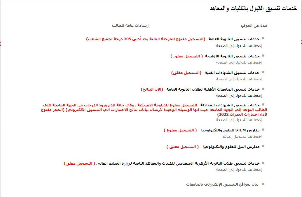 التسجيل متاح الآن بحد أدنى 50 %.. فتح موقع التنسيق وبدء المرحلة الثالثة 2022