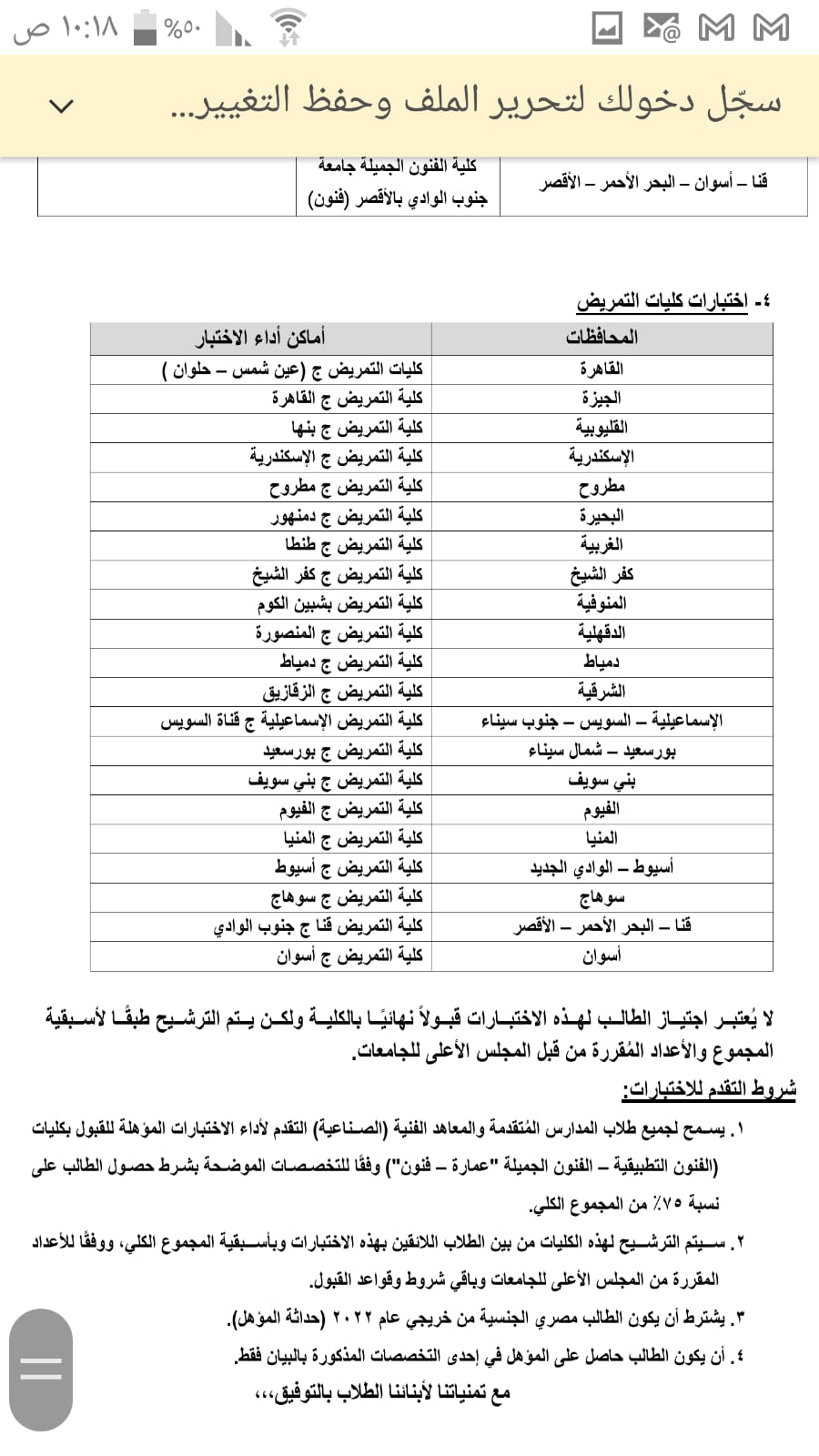 كما تُعقد الاختبارات بالكليات المعنية في الفترة من يوم الثلاثاء 6-9-2022 حتى يوم الخميس الموافق 8-9-2022، وفقًا للشروط والقواعد الصادرة من المجلس الأعلى للجامعات مع تطبيق كل الاشتراطات الصحية والإجراءات الاحترازية.