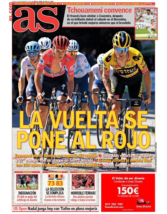 عنونت آس في غلافها بـ تشواميني مُقنع، وقالت أن النجم الفرنسي يجعلهم ينسون كاسيميرو بعد ظهوره الرائع يوم السبت في البرنابيو حيث قدم أرقامًا أفضل من البرازيلي.