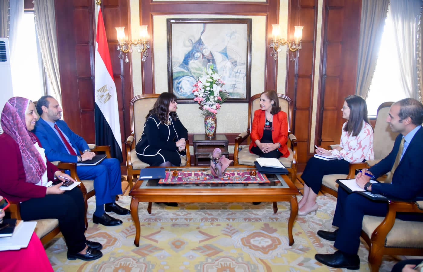 في مستهل اللقاء، رحبت وزيرة الهجرة السفيرة سها جندي بالسفيرة نائلة جبر، وأعربت عن امتنانها وسعادتها البالغة بهذا اللقاء، والذي تناول بحث تعزيز سبل التعاون المشترك في ملف الهجرة غير الشرعية.