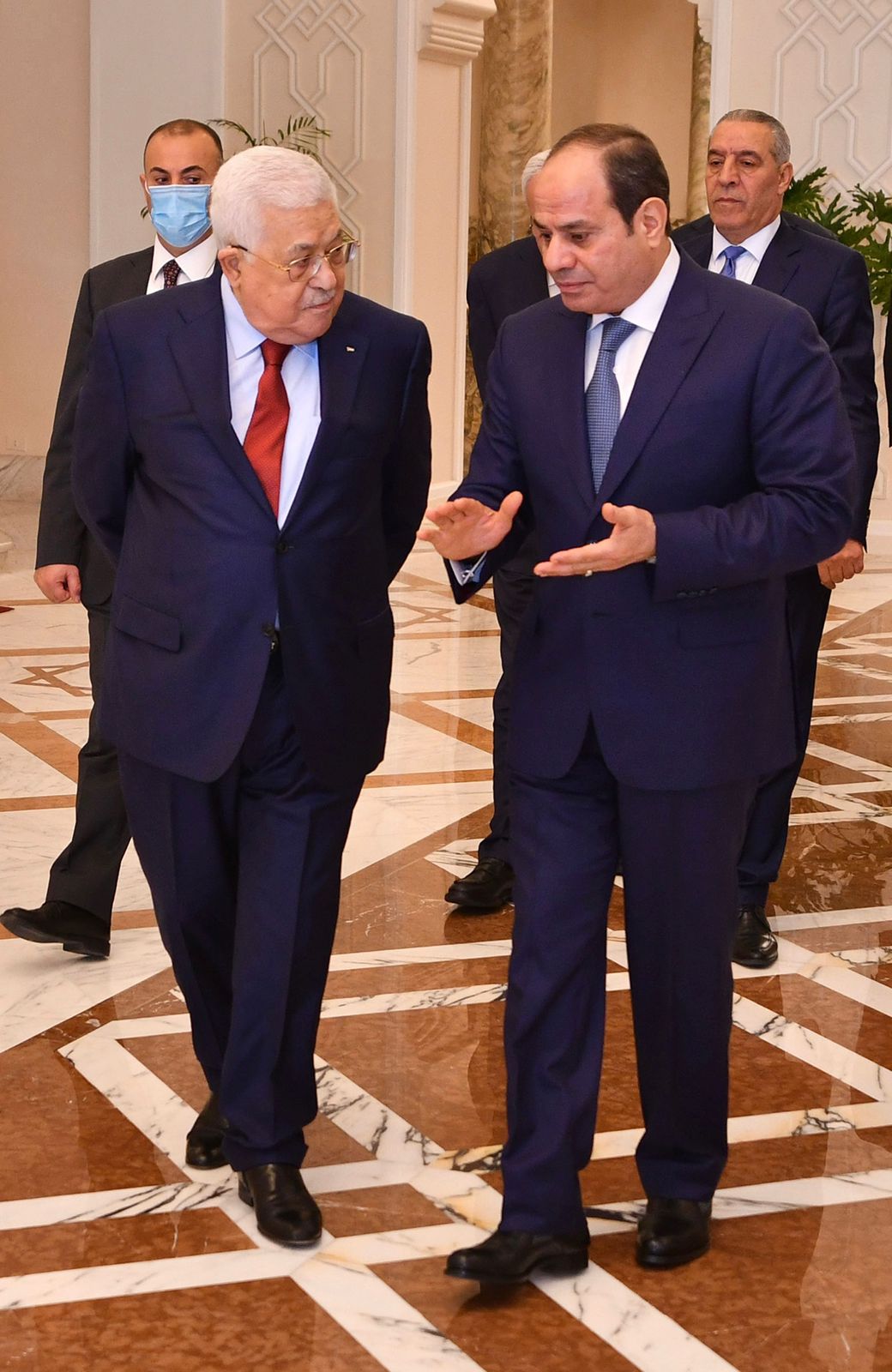 استقبل الرئيس عبد الفتاح السيسي، رئيس الجمهورية، اليوم الثلاثاء، بقصر الاتحادية الرئيس الفلسطيني محمود عباس أبو مازن، وذلك بحضور اللواء عباس كامل رئيس المخابرات العامة، إلى جانب الدكتور رياض المالكي وزير الخارجية الفلسطيني، وحسين الشيخ أمير سر اللجنة التنفيذية لمنظمة التحرير الفلسطينية، واللواء ماجد فرج رئيس المخابرات العامة الفلسطيني، والسفير دياب اللوح السفير الفلسطيني بالقاهرة.
