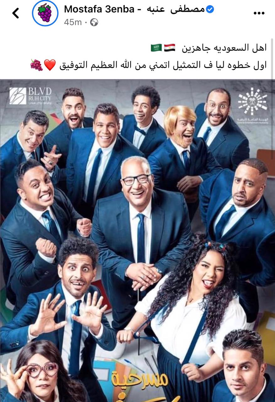 ونشر عنبة، بوستر المسرحية، عبر حسابه الرسمي على موقع فيسبوك، وعلق عليه: أول خطوة ليا في التمثيل، أتمنى من الله التوفيق، وانهالت عليه التعليقات من متابعيه، لتهنئته بالمسرحية.
