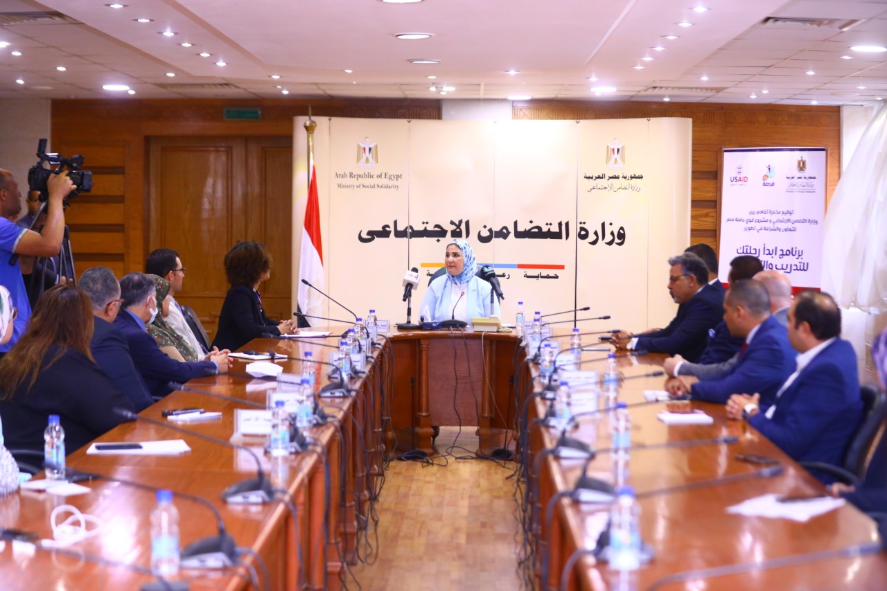 شهدت نيفين القباج، وزيرة التضامن الاجتماعي، توقيع مذكرة تفاهم بين وزارة التضامن الاجتماعي والوكالة الأمريكية للتنمية الدولية، مشروع قوى عاملة مصر، وذلك للتعاون والشراكة لتنفيذ برنامج «ابدأ رحلتك للتدريب والتوظيف» تحت مظلة برنامج فرصة.