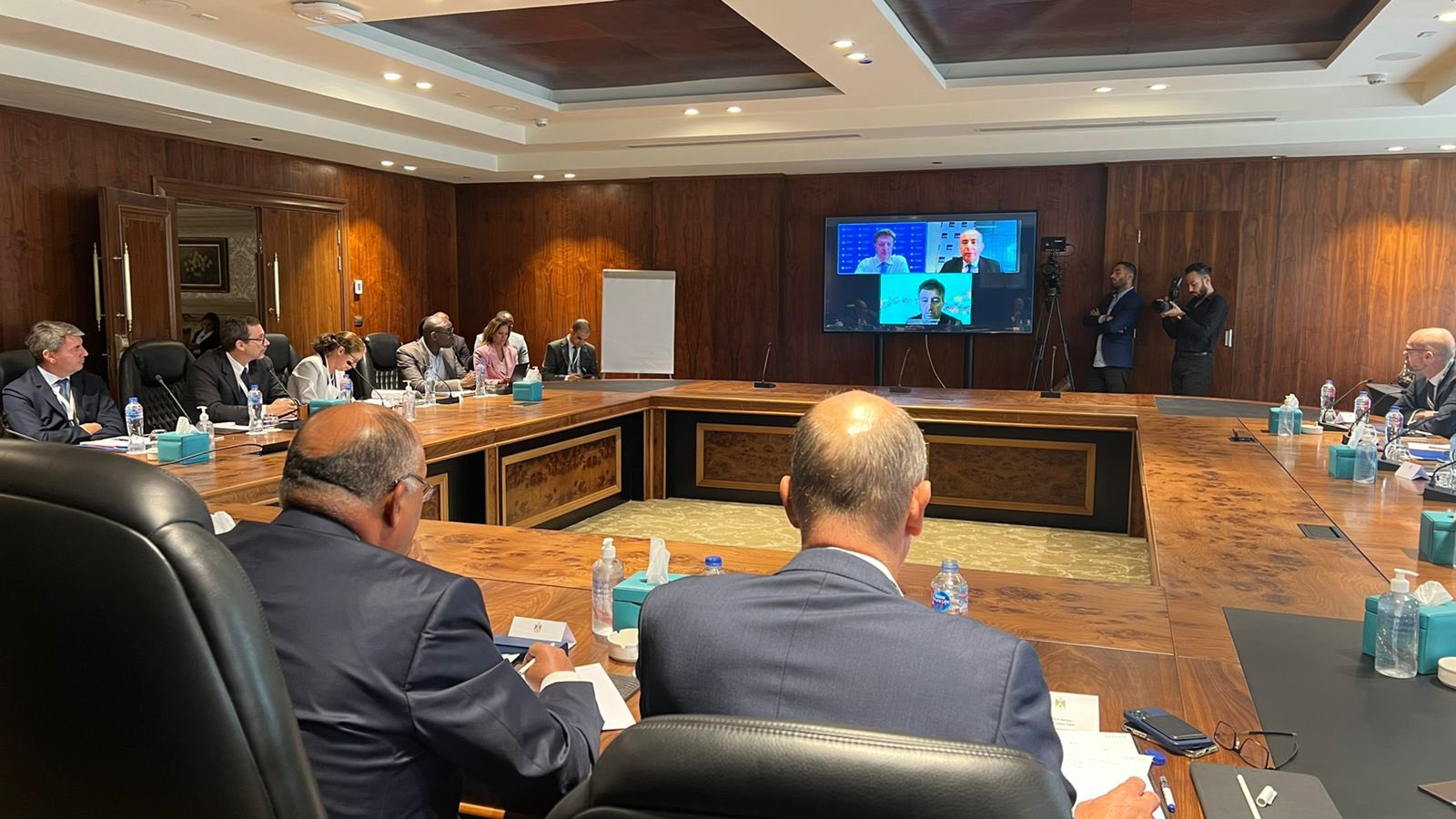 كما استعرض شكري، رؤية الرئاسة المصرية لمؤتمر COP27 حول سبل حشد تمويل المناخ اللازم بهدف تنفيذ تعهدات المناخ، وخاصةً فيما يتعلق بتمويل اجراءات التكيُف وتخفيف تداعيات تغير المناخ ومعالجة الخسائر والأضرار.