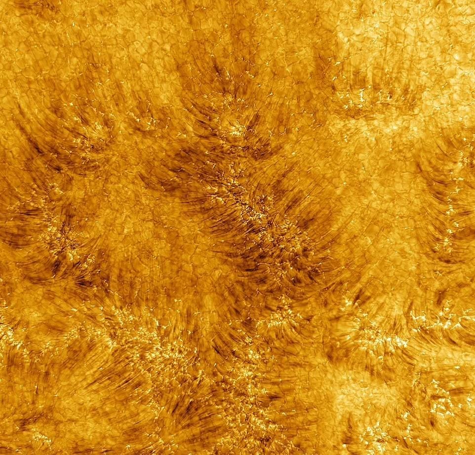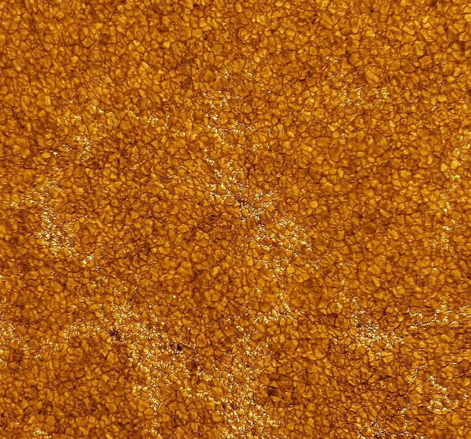 وشوهدت أيضًا هياكل تشبه الخلايا الذهبية، كل منها بحجم تكساس، معبأة مثل قرص العسل، وهي علامة على الحركات العنيفة، التي تنقل الحرارة من داخل الشمس إلى سطحها.