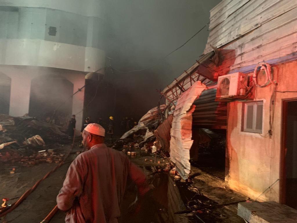 وتبين من الفحص المبدئي أن سبب الحريق ماس كهربائي بالوصلات الداخلية للمخزن.