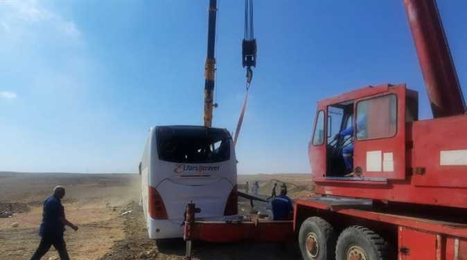 إعادة الحركة المرورية بعد إزالة آثار حادث أتوبيس رأس غارب | صور