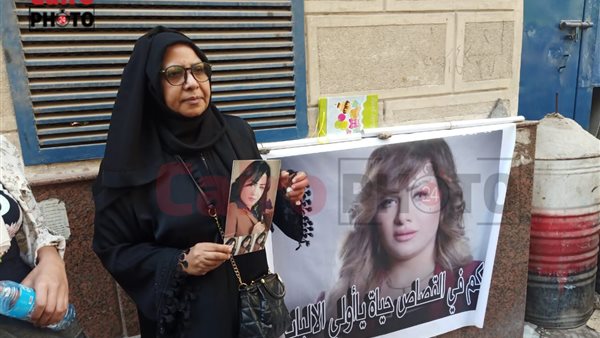 والتقطت عدسة القاهرة 24، عدد من الصور لوالدة المذيعة شيماء جمال وهي ترتدي زي أسود اللون وتحمل صور ابنتها الضحية، وتردد: حقك هجيبة.