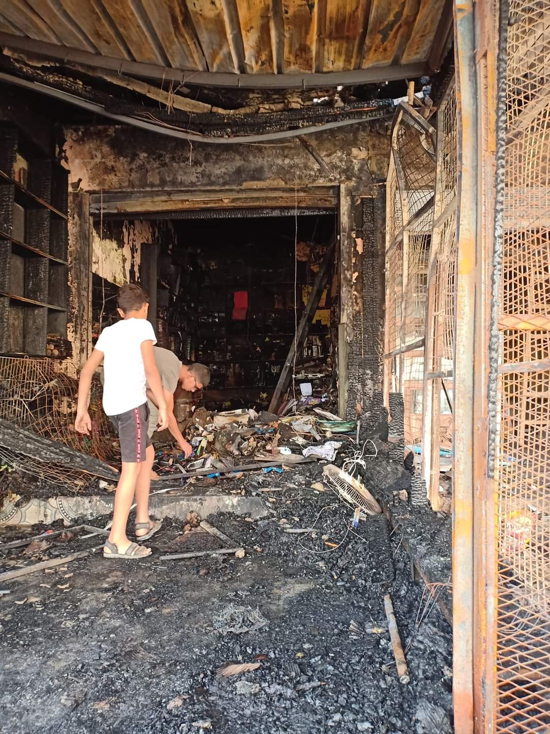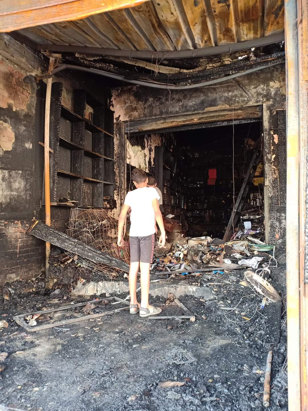 خسائر بالملايين.. آثار حريق اندلع في 4 محال تجارية بشمال سيناء | صور