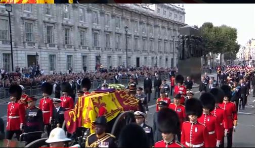 غادرت الملكة إليزابيث قصر باكنجهام للمرة الأخيرة حيث تتوجه إلى كنيسة وستمنستر بوسط لندن، في مراسم جنائزية مهيبة بقيادة الملك تشارلز الثالث، وبحضور الأمير أندرو وجميع أفراد الأسرة الملكية، الذين يصاحبون الملكة في رحلتها إلى مثواها الأخير.