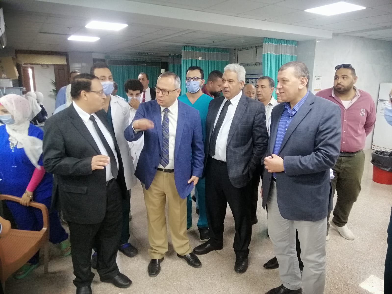 وبعد ذلك توجه نائب رئيس الجامعة وعميد الكلية لمتابعة سير العمل بأقسام الباطنة وقسطرة القلب، والوقوف على أعمال التجديدات بهما.