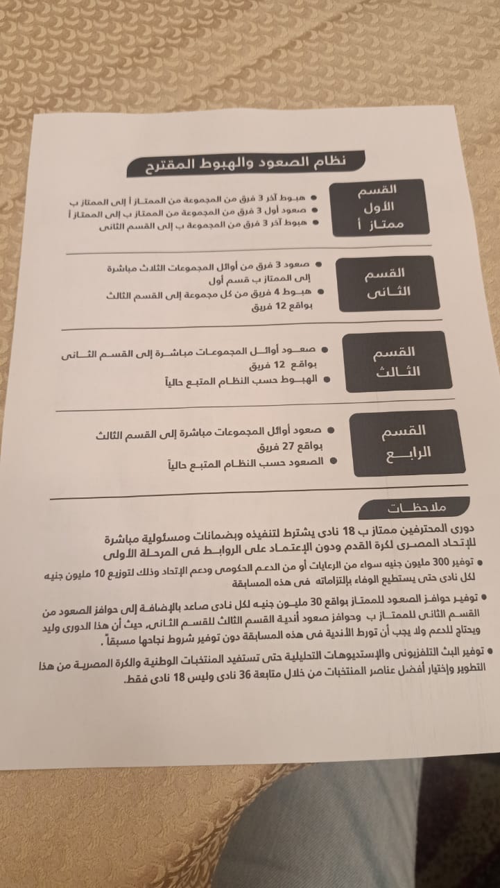 300 مليون جنيه شرط موافقة أندية الدرجة الثانية لتطبيق دوري المحترفين
