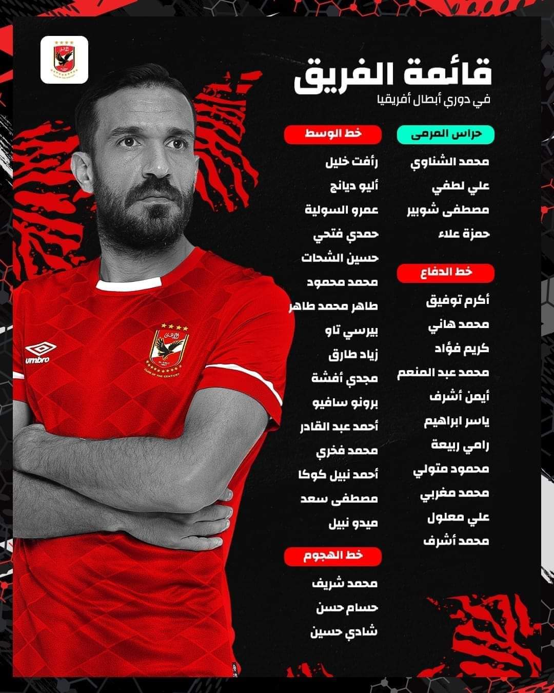 أعلن النادي الأهلي عن قائمته الأولى الإفريقية، المنتظر أن يخوض بها الفريق، منافسات بطولة دوري أبطال إفريقيا للموسم الجديد 2022-2023.