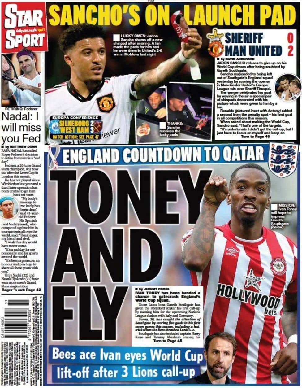 أشادت ستار سبورت في غلافها اليوم بأداء جادون سانشو مع فريق مانشستر يونايتد، والذي تألق بشكل واضح في مباريات الفريق الأخيرة تحت قيادة الهولندي إريك تين هاج.