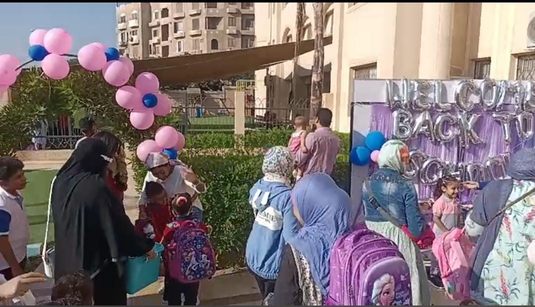 بالبلالين والشخصيات الكرتونية.. المدارس الدولية تستقبل طلابها في أول يوم دراسة | صور