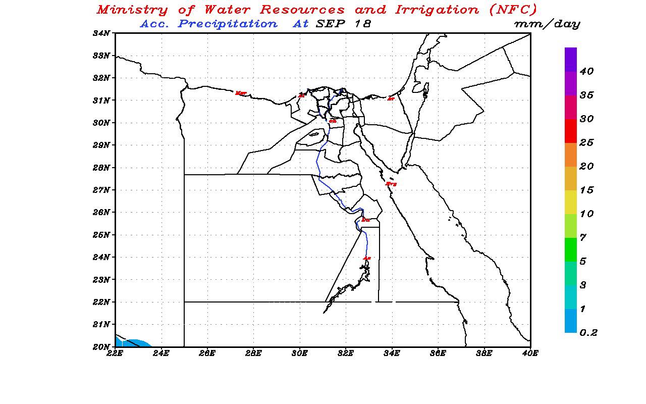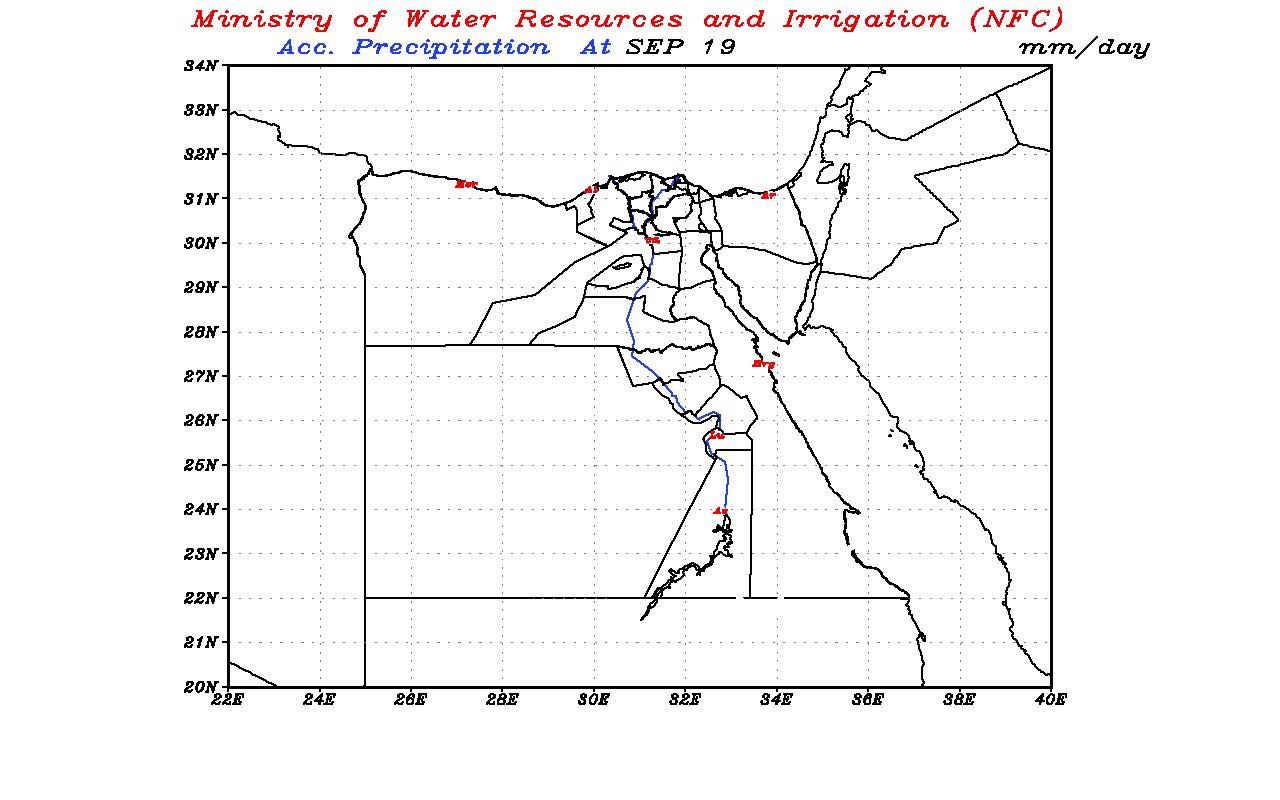كشف مركز التنبؤ بالفيضان، التابع لـ وزارة الموارد المائية والري، التوقعات الخاصة بخرائط هطول الأمطار على محافظات الجمهورية.