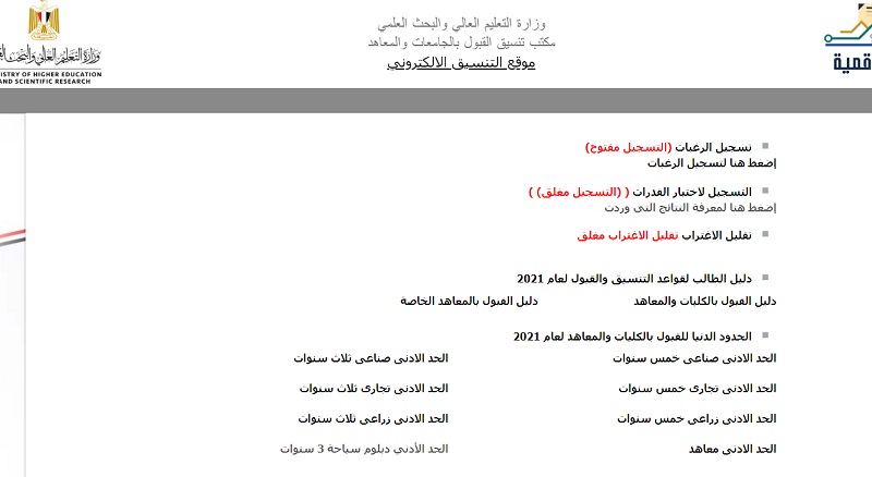 - ادخل على موقع التنسيق الإلكتروني من هنـــــــــا.