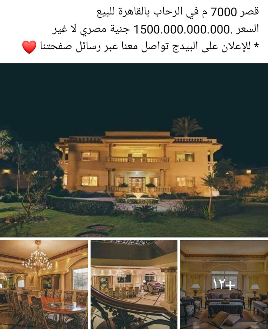 «ربنا يكتبلنا قصر زيه في الجنة».. تلك العبارة جاءت ردًا على منشور أثار جدلًا واسع النطاق، عبر موقع التواصل الاجتماعي فيسبوك، بين مستخدمي السوشيال ميديا، والذي حقق أرقامًا كبيرة من التفاعلات خلال 24 ساعة، فتضمن صورًا تفصيلية لقصر فخم معروض للبيع، يزعم تواجده بالرحاب بالقاهرة، تبلغ مساحته الكلية 7 آلاف متر، الأمر الذي نفاه سكان المنطقة مؤكدين أنه لا وجود له بالرحاب.