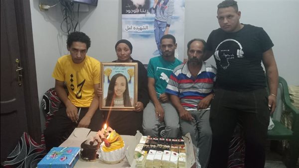 عيدك في السما..أسرة أمل فتاة البراجيل ضحية ابن عمتها تحتفل بذكرى ميلادها بصورة وتورتة | صور