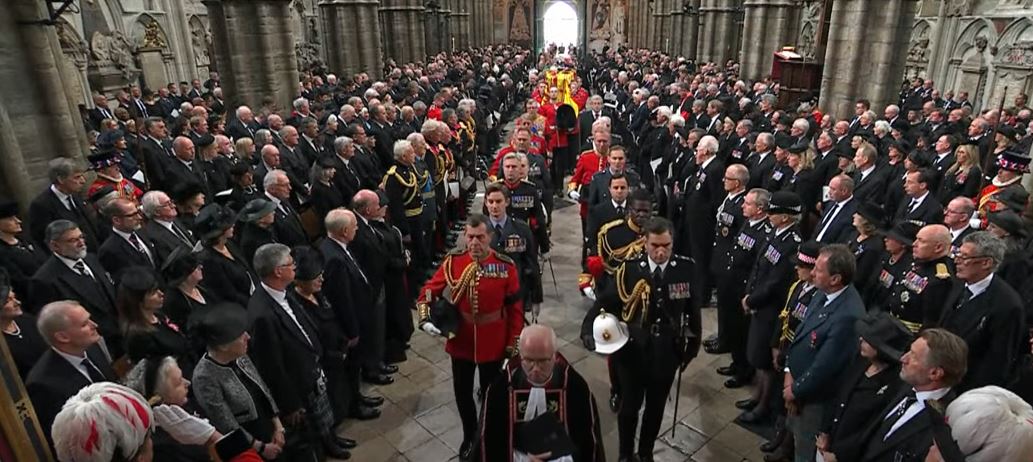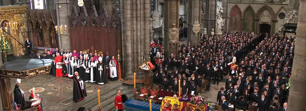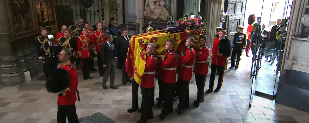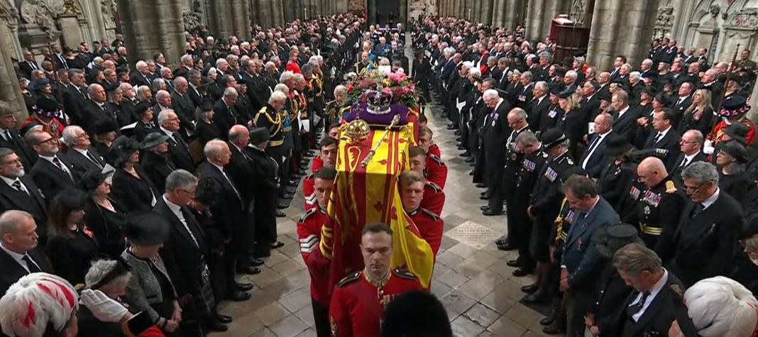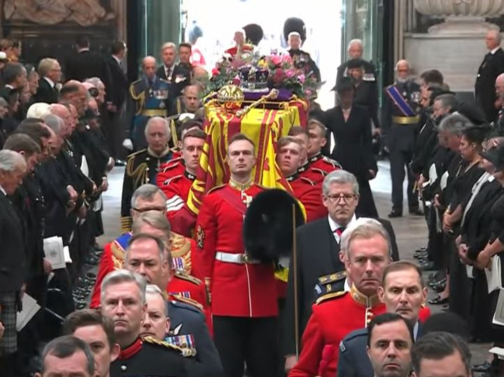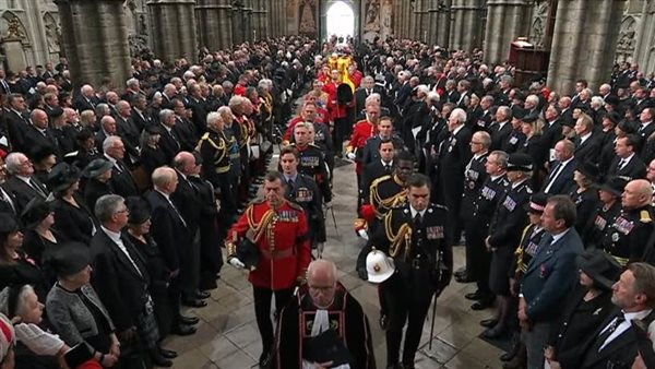 وشهدت بريطانيا، مراسم نقل جثمان الملكة إليزابيث الثانية إلى كاتدرائية ويستمنستر آبي من أجل الصلاة على روح الملكة وعزف الموسيقى ضمن مراسم الجنازة.