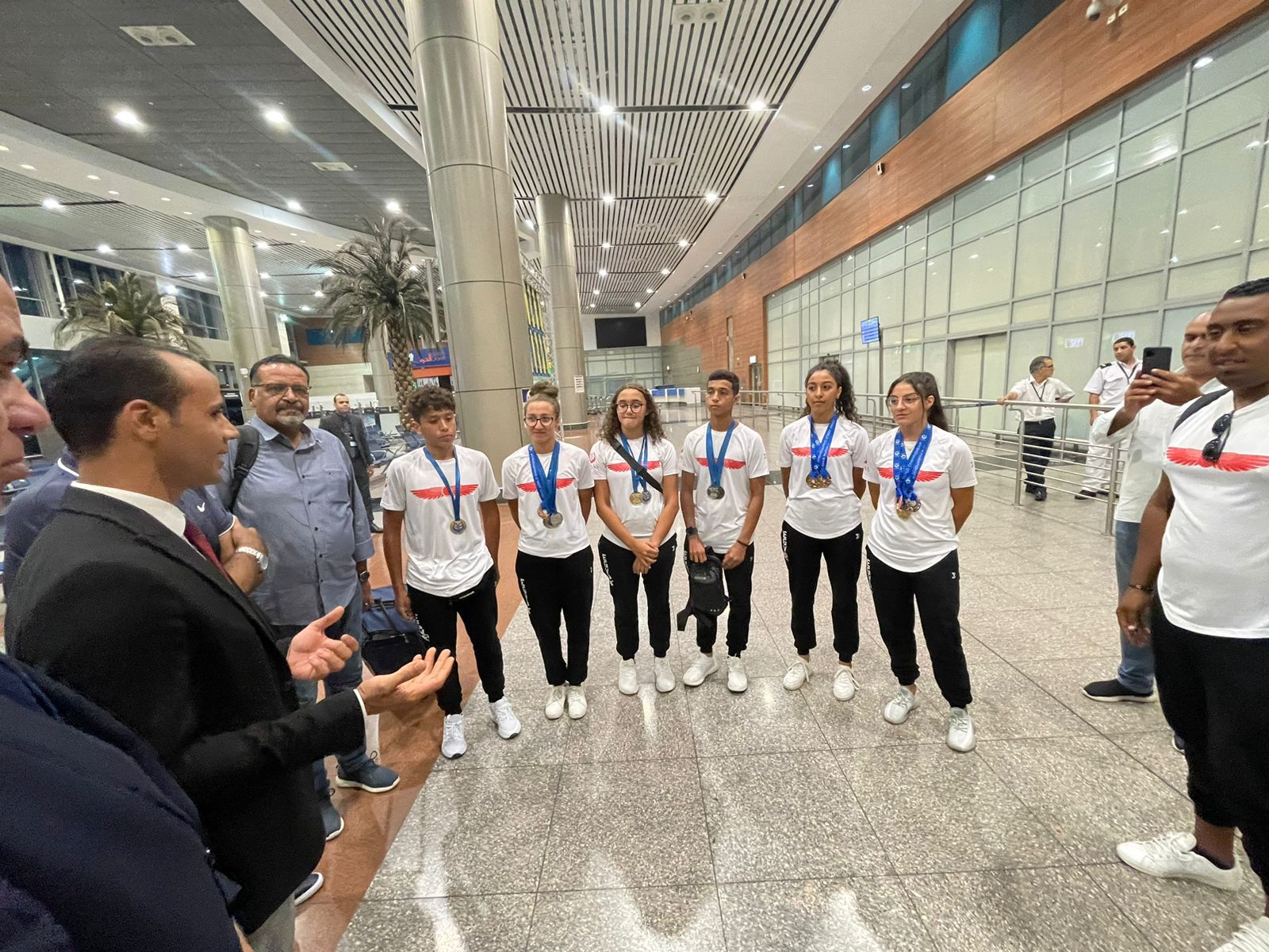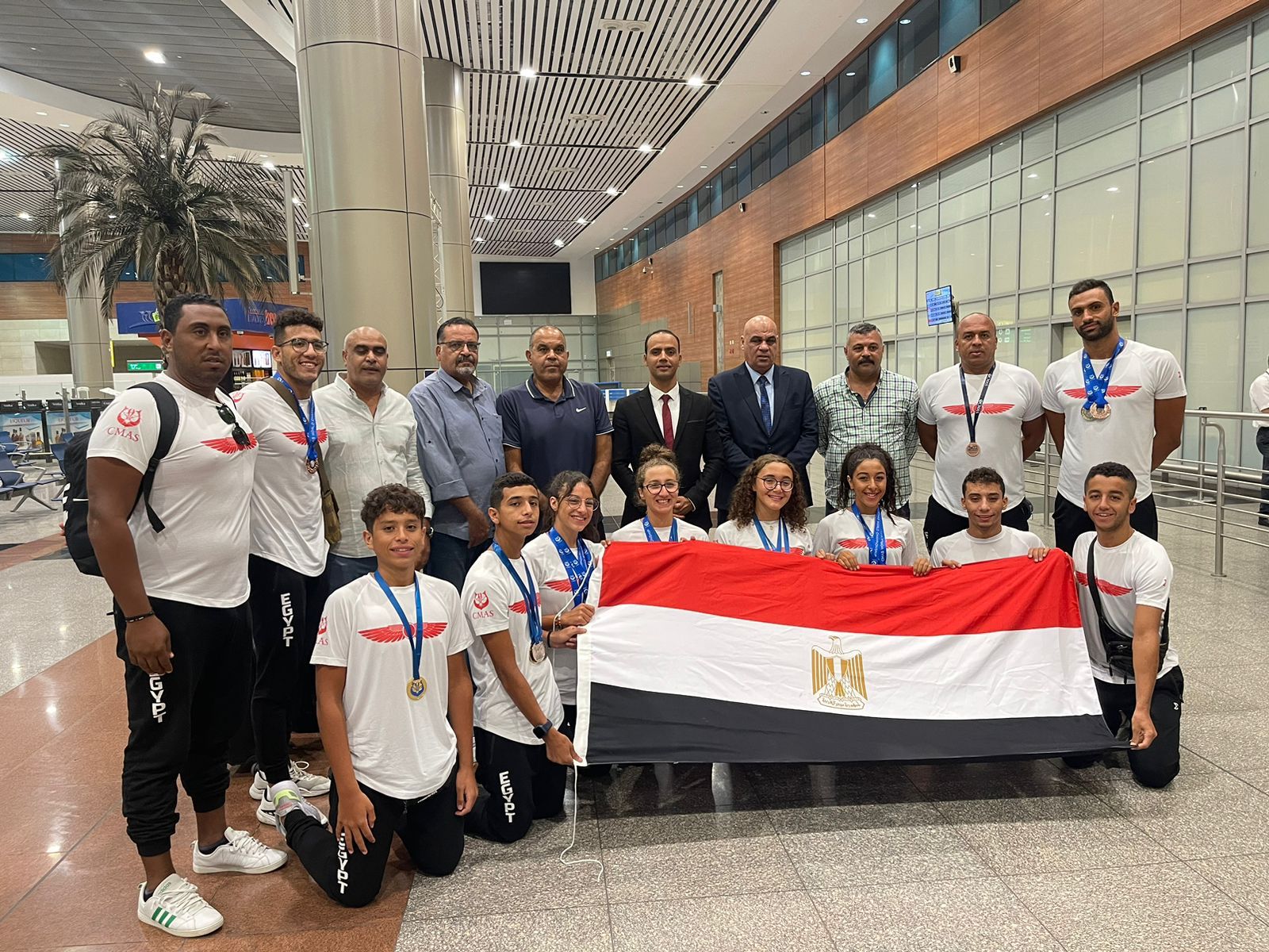 الشباب والرياضة تستقبل بعثتي السباحة بالزعانف والملاكمة بمطار القاهرة