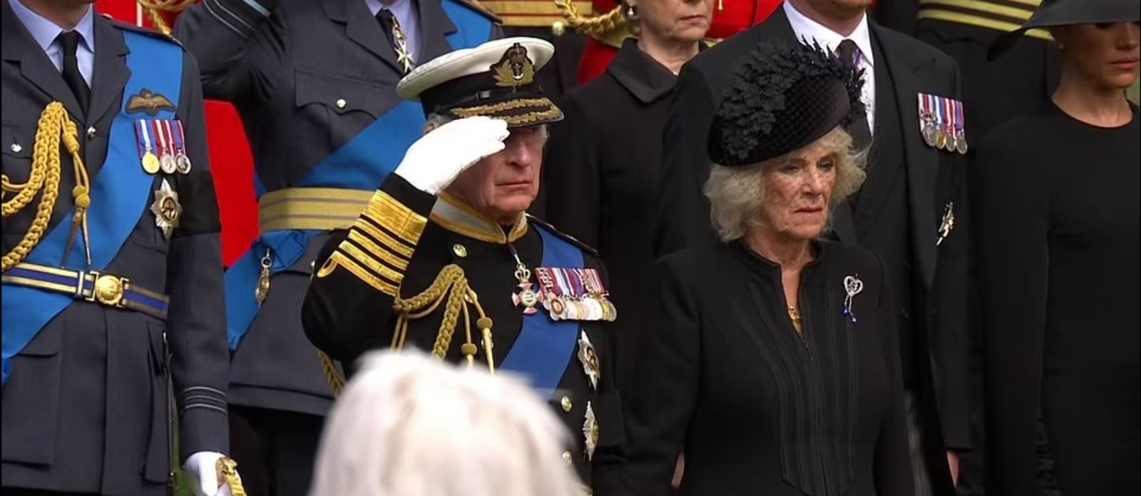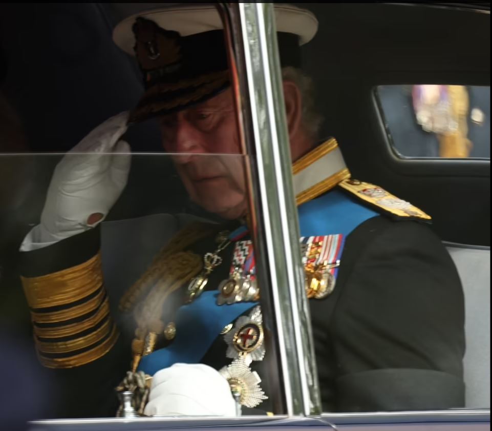 كما ظهرت على ملامح الملك تشارلز الثالث الحزن الشديد في جنازة والدته في وستمنستر، والتي انتهت بدقيقتين من الصمت، مع آخر مشاركة والنشيد الوطني، حيث كان الحزن يخيم على وجوه تشارلز وإخوته وأطفاله، بالإضافة إلى الحشود الهائلة التي اجتاحت المركز التجاري ووايتهول وميدان البرلمان لتوديع الملكة الحبيبة بينما كان نعشها ينقل من الدير.