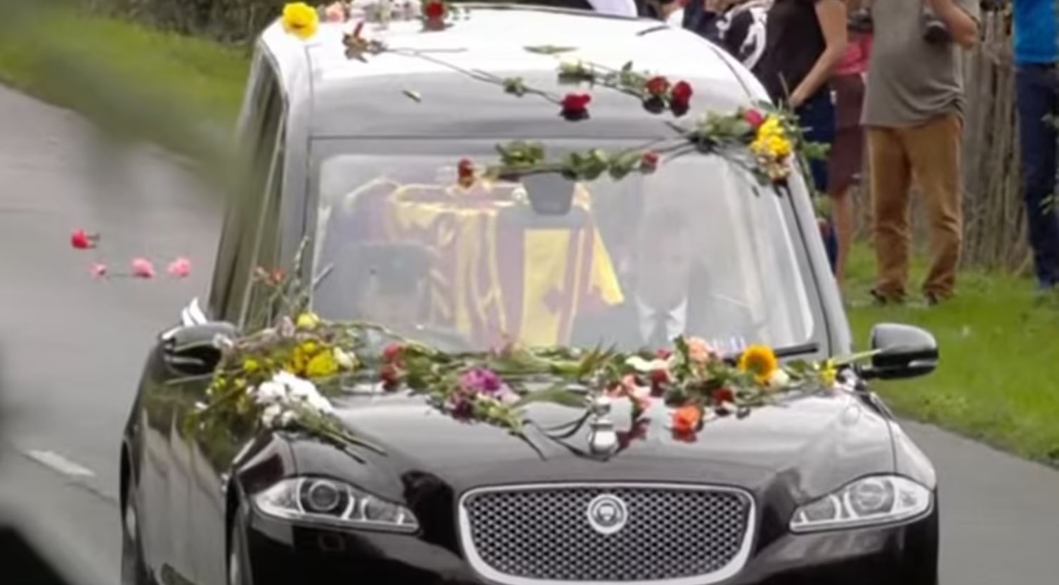 ألقت الحشود المجتمعة لتوديع جثمان الملكة اليزابيث الثانية إلى مثواها الأخير، الورود علي السيارة التي تنقل الجثمان، وهتف لها للمرة الأخيرة اليوم حيث أعيدت إلى قلعة وندسور.