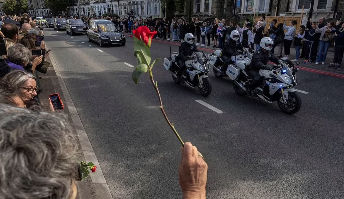 وفي مشاهد مؤثرة، ووفقا لما أفادت به صحيفة الديلي ميل البريطانية، فقد اصطف ما يقدر بنحو مليوني شخص من المودعين في الشوارع ليقولوا وداعا لأطول ملوك بريطانيا حكما، إليزابيث الثانية، مع عدد هائل من باقات الورد لتحية جثمانها.