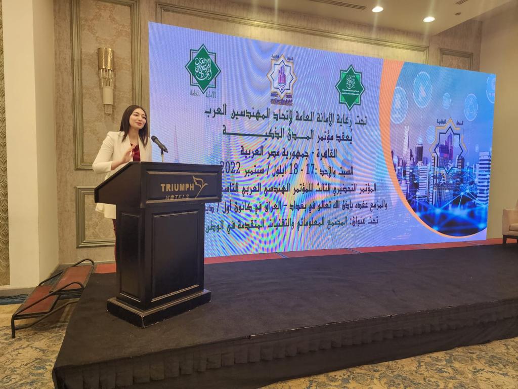 الزميلة ياسمين كمال تقدم مؤتمر المدن الذكية بحضور رئيس اتحاد المهندسين العرب