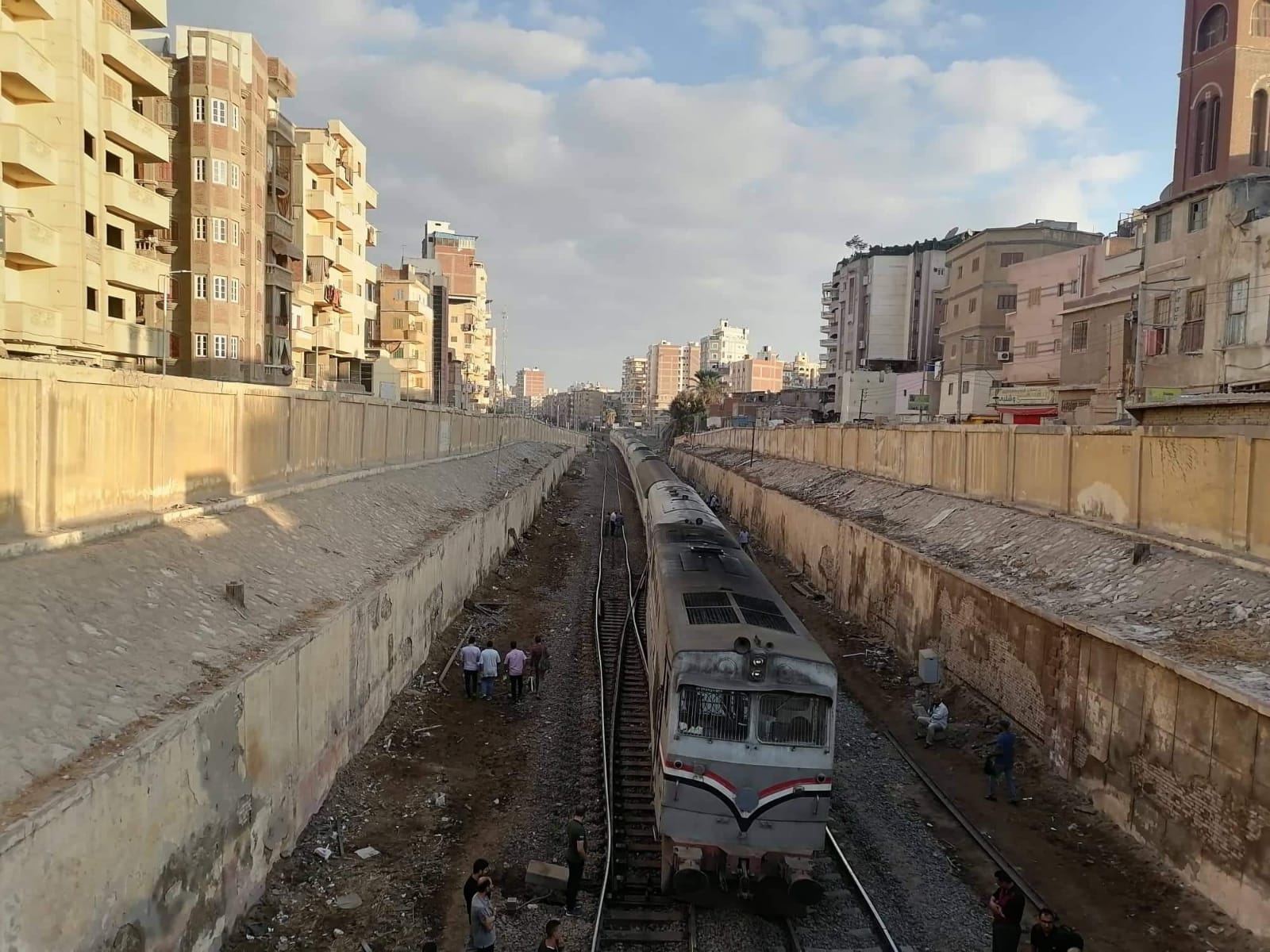خروج عربتي قطار عن قضبان شريط السكة الحديد بدمنهور