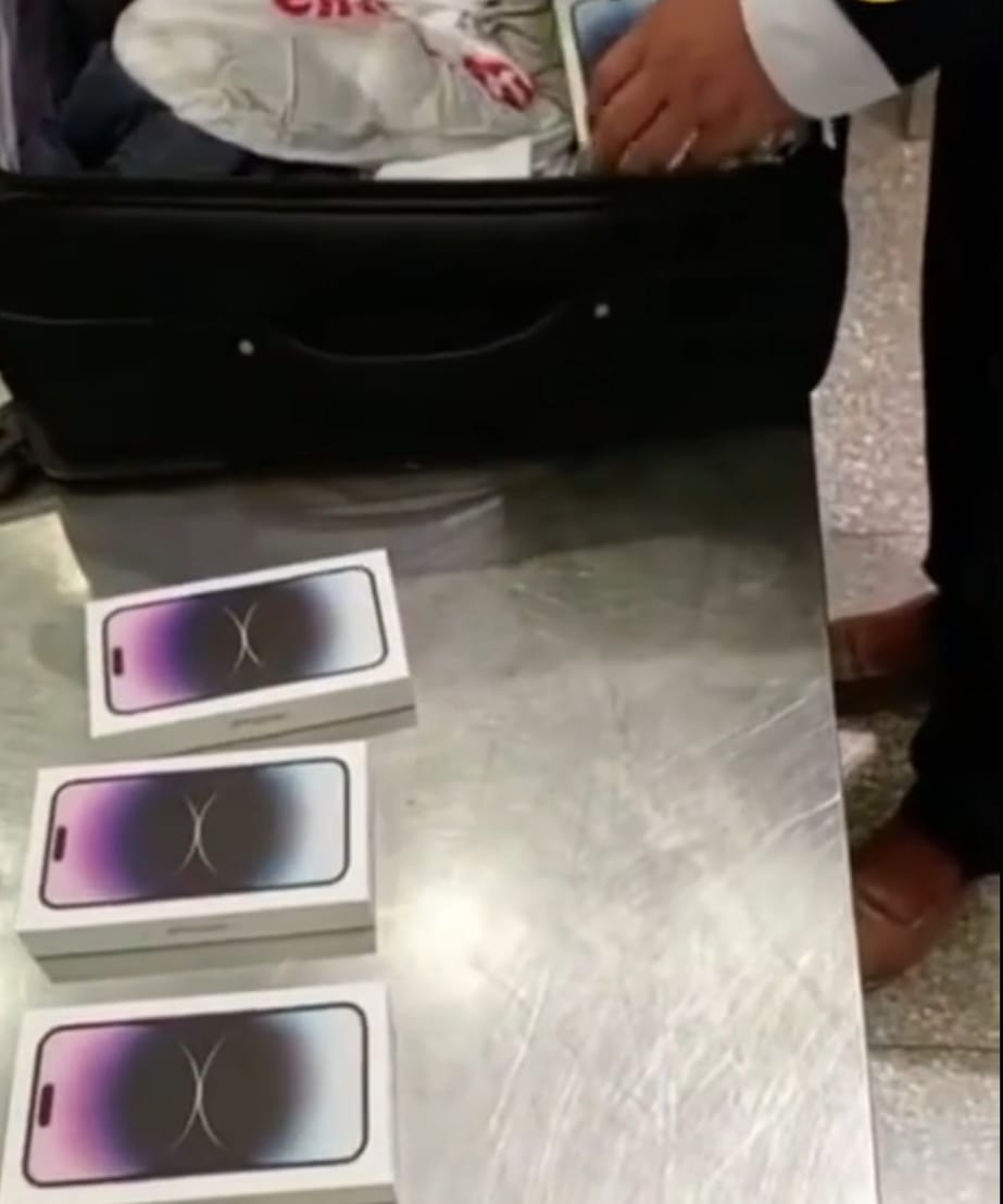 وبالعرض على محمود محمد سعيد، مدير الحركة، قام بتكليف محمود محمد طلعت، مأمور الجمرك تفتيش أمتعة الراكب، في حضور رأفت وهيب، مدير الإدارة الرابعة بالإنابة، فتبين وجود 14 هاتف محمول ماركة آيفون 14 بروماكس داخل الأمتعة الشخصية.