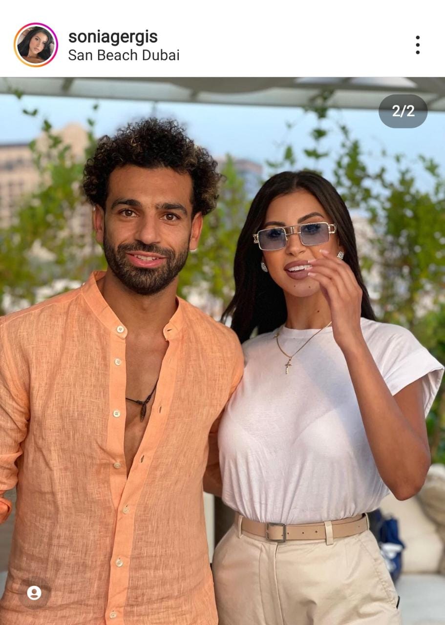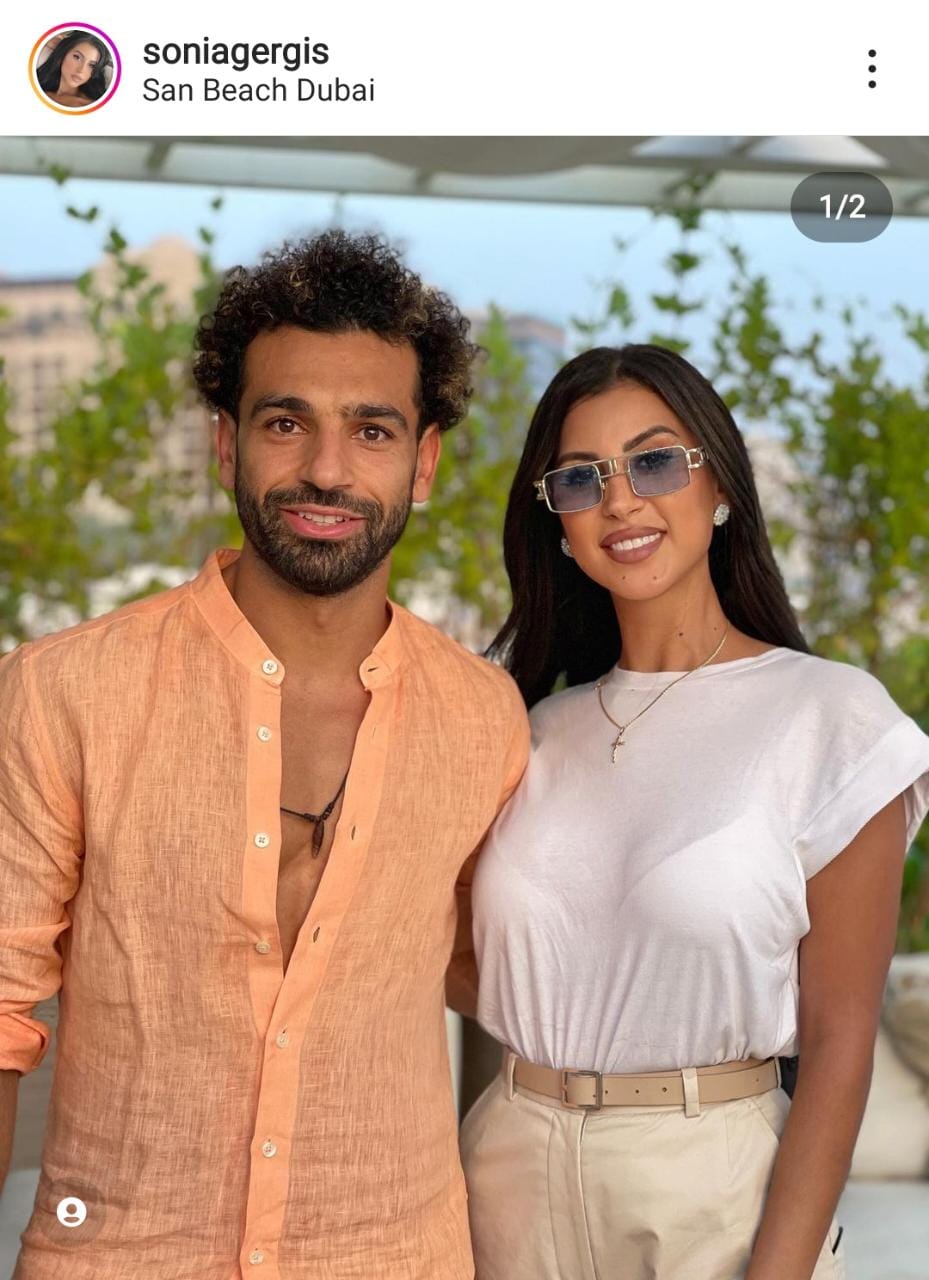 وقال مستخدم أخر: الملك محمد صلاح مع سونيا جرجس مديرة فندق سان بيتش بدبي، ملكة جمال مصر، سونيا التقطت الصورة عندما رأت صلاح اثناء قضاءه إجازة سريعة في شاطئ الفندق قبل التحاقه بمعسكر منتخب مصر.