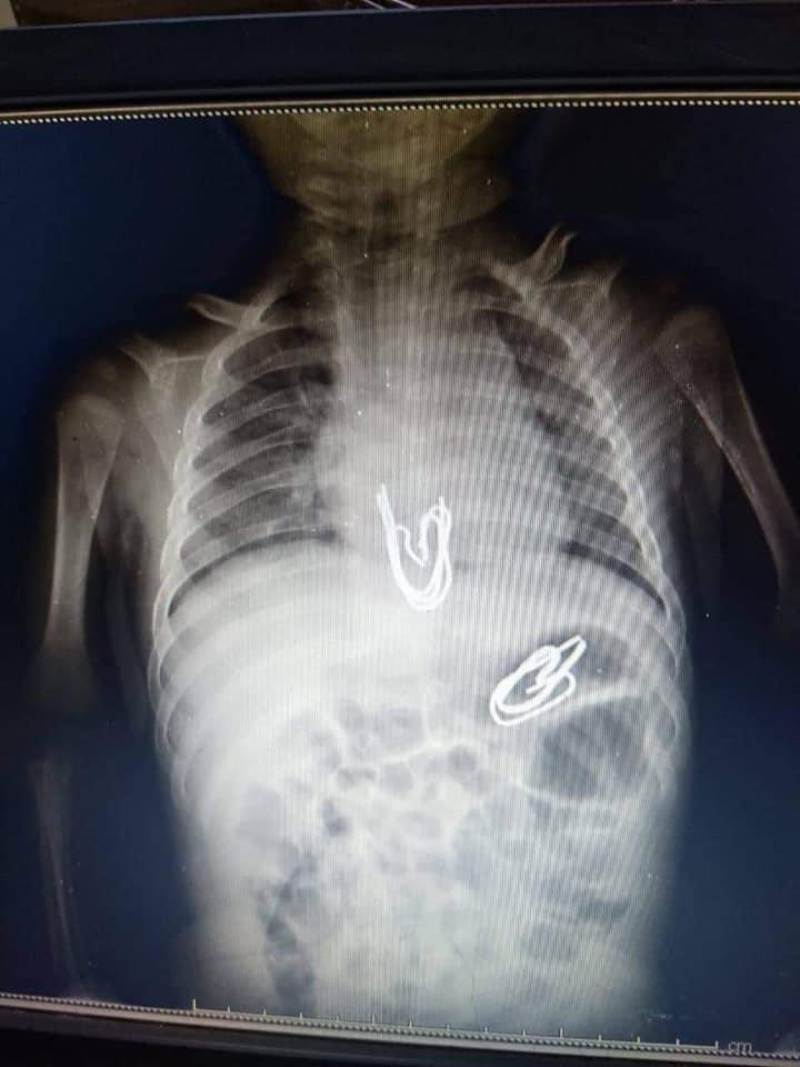 وأضاف استشاري الأطفال، أن الأم فوجئت بأن الطفل يبكي بشدة وذلك بعد تركه مع شقيقته التي تبلغ من العمر 3 سنوات، والأم علمت بأنه بلع مشابك معدنية تستخدم في تعليق الستائر.