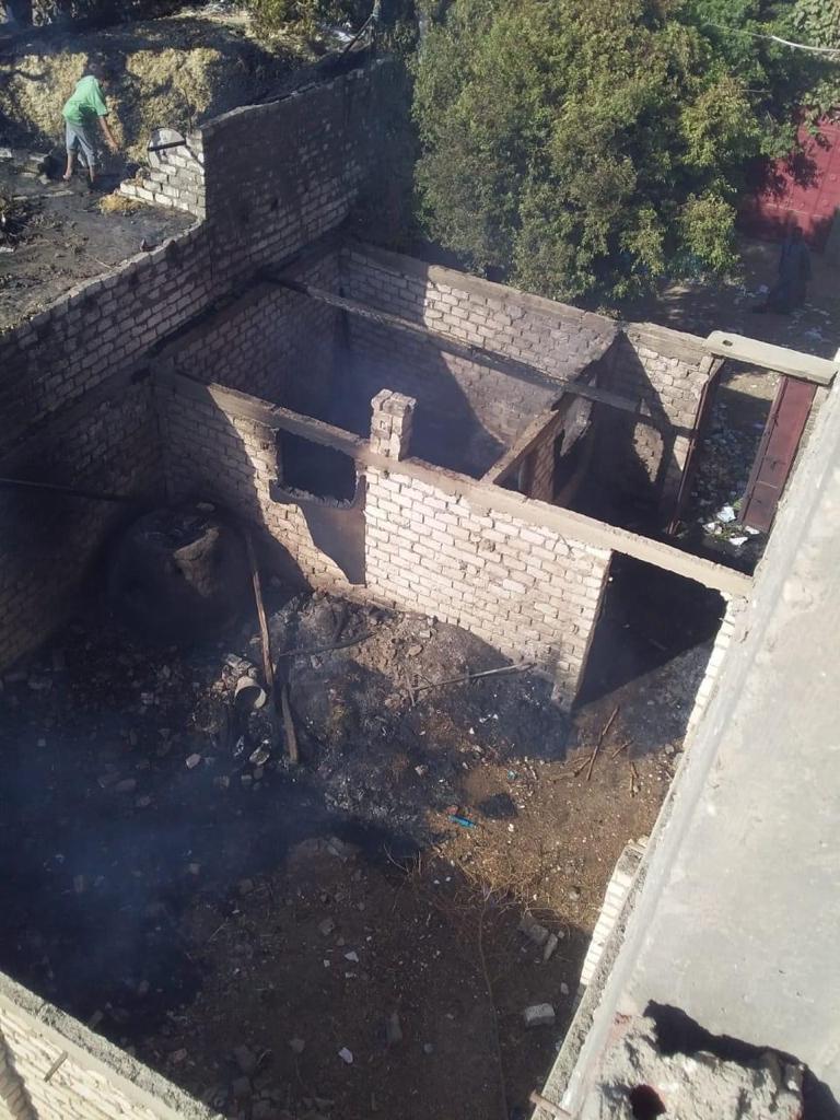 وبالانتقال إلى محل البلاغ وبالفحص؛ تبين اندلاع حريق في منزل مشيد بالطوب الأبيض "البلوك"، وَحُوش لتربية ماشية ملاصق له، ملك المدعو "ا. م" عامل، يقيم بذات الناحية، وامتدت النيران إلى 3 منازل أخرى ملاصقة، مكونة من طابق واحد، وغير مأهولة بالسكان.