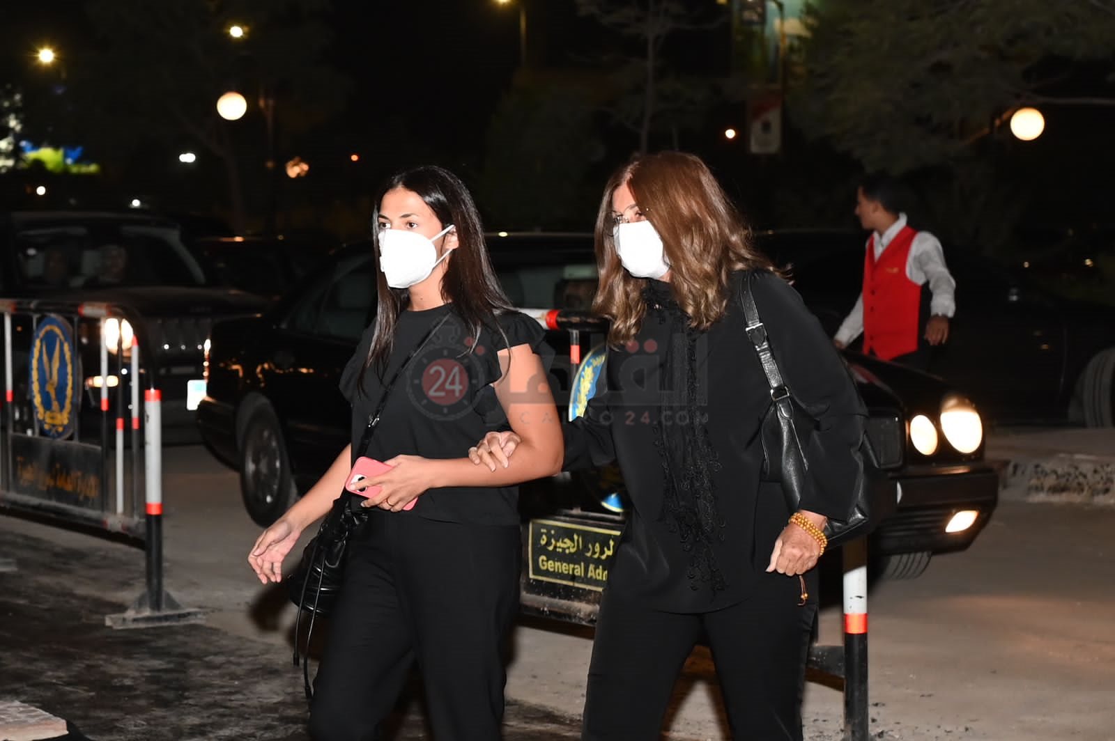 ميرفت أمين ودنيا سمير غانم في عزاء زوجة خالد زكي