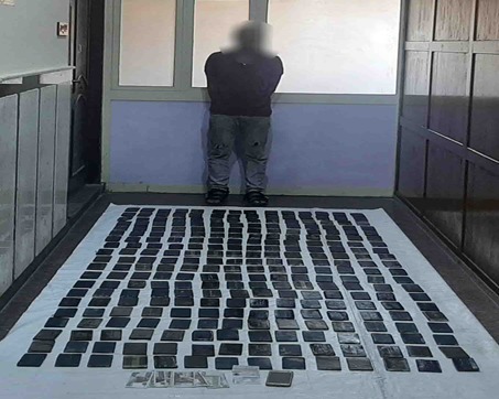 و ضبط عاطل "له معلومات جنائية" حال استقلاله سيارة بدائرة قسم شرطة الحمام بمطروح وبحوزته 150 طربة لمخدر الحشيش وزنت 15 كيلو جرام – مبلغ مالي – هاتف محمول.