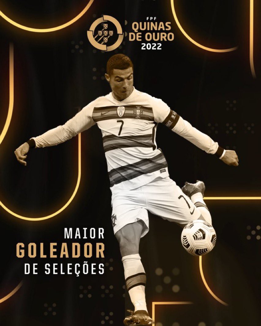 وحصل البرتغالي كريستيانو رونالدو على جائزة كويناس دي أورو 2022، كهداف للمنتخب البرتغالي عبر التاريخ، وذلك خلال حفل نظمه الاتحاد البرتغالي لكرة القدم للفوز بتلك الجائزة.