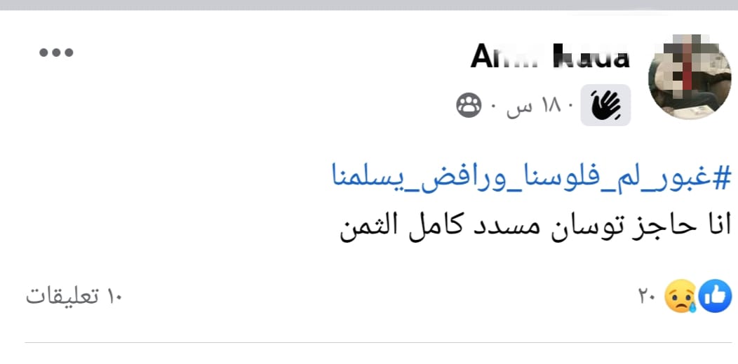 وأضاف هاشم لـ القاهرة 24: حاجز توسان من شهر مارس 2022، ودفعت بقية المبلغ بالكامل يوم 28 أبريل الماضي، وعلى الرغم من ذلك غبور رفض يسلمني.