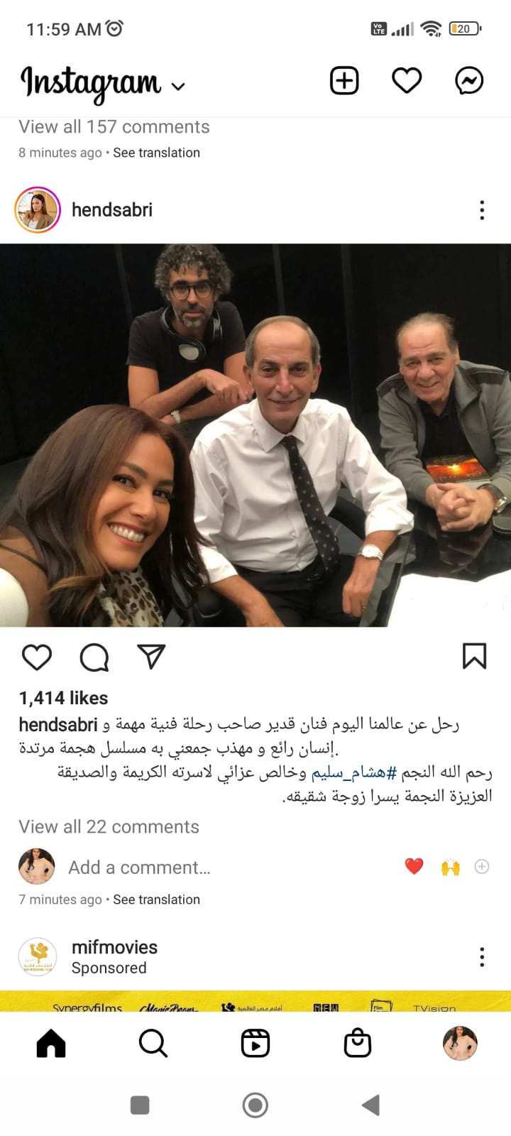 وأضافت هند صبري: رحم الله النجم هشام سليم وخالص عزائي لأسرته الكريمة والصديقة العزيزة يسرا زوجة شقيقه.