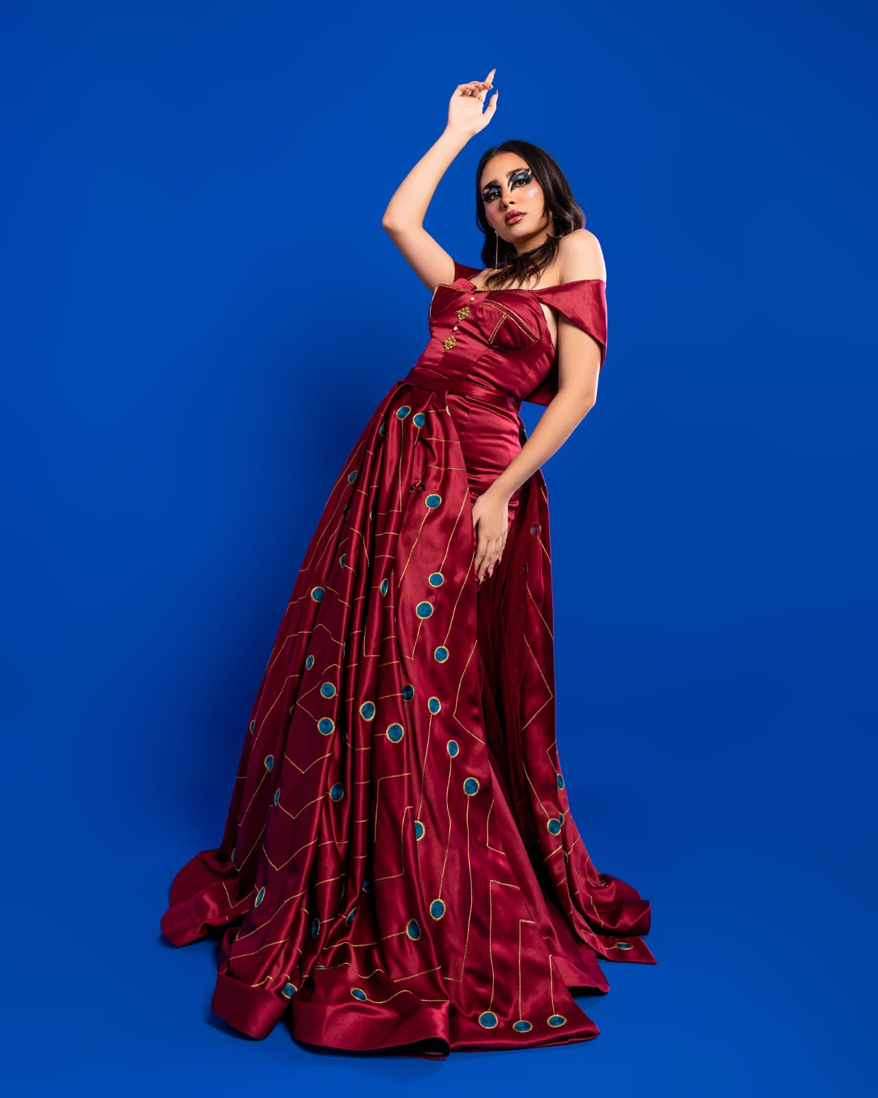 وتابعت: عرضتُ الفكرة على يارا، لتسليط الضوء عليها من خلال مسابقة Miss elegant international، مستكملة: فعلًا ساعدتني ولبست الفستان لأنها موديل، وعرضته كمشروع خدمي، ضمن المسابقة.