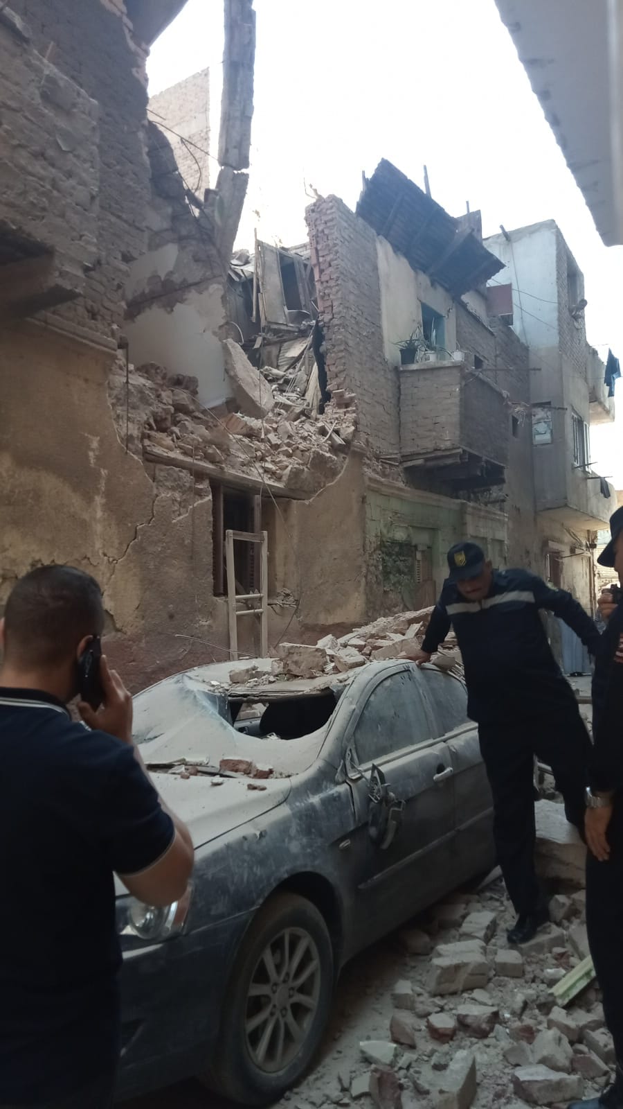 والتقط أحد شهود العيان على حادث انهيار منزل العمرانية، بعض الصور التي رصدت انهيار العقار، وتحطم سيارة ملاكي أسفله، وكذا جهود أفراد الحماية المدنية بالجيزة، في رفع آثار الحادث.