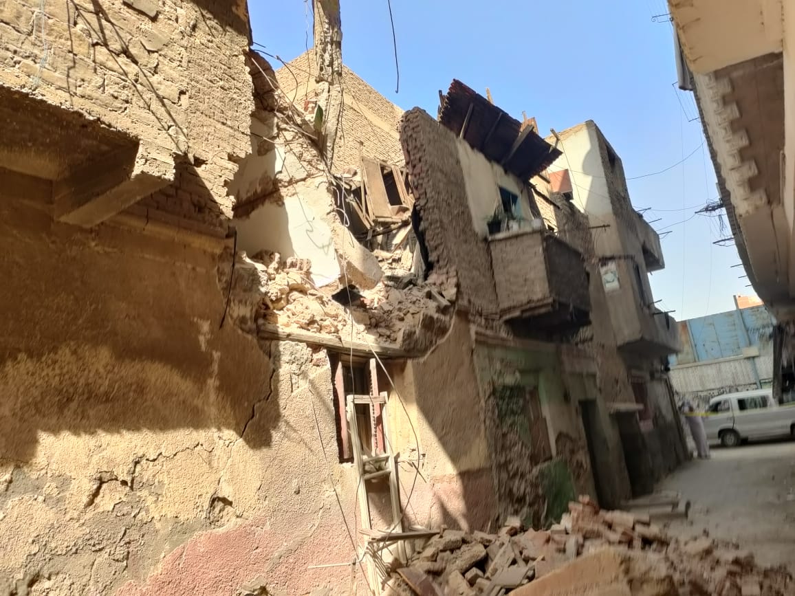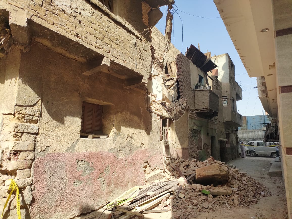 شهود عيان في انهيار أجزاء من عقار بالعمرانية: صاحب العقار لحق نفسه ونط من البلكونة | فيديو وصور