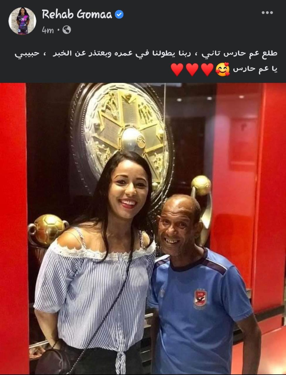 ونشرت رحاب جمعة، لاعبة يد الأهلي السابقة والمحترفة بالدوري الفرنسي، عبر حسابها على فيسبوك، نعي عم حارث، مؤكدة أنه وافته المنية، قبل أن تعود وتحذف المنشور، وتوضح أنها اختلط عليها الأمر، وأن عامل المهمات بالنادي الأهلي على قيد الحياة.