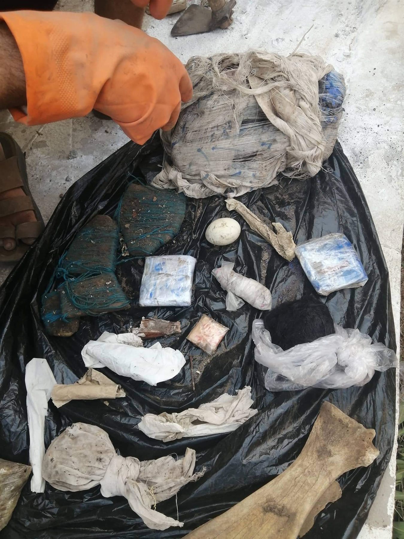 وأشار أهالي القرية، إلى أنه جرى جمع تلك الأعمال السحرية داخل أجولة، وتم التخلص منها وفك تلك الأعمال السحرية، وجرى إبطال وفك الأسحار والأعمال السفلية التي عثر عليها لرفع المُعاناة عن أصحابها.
