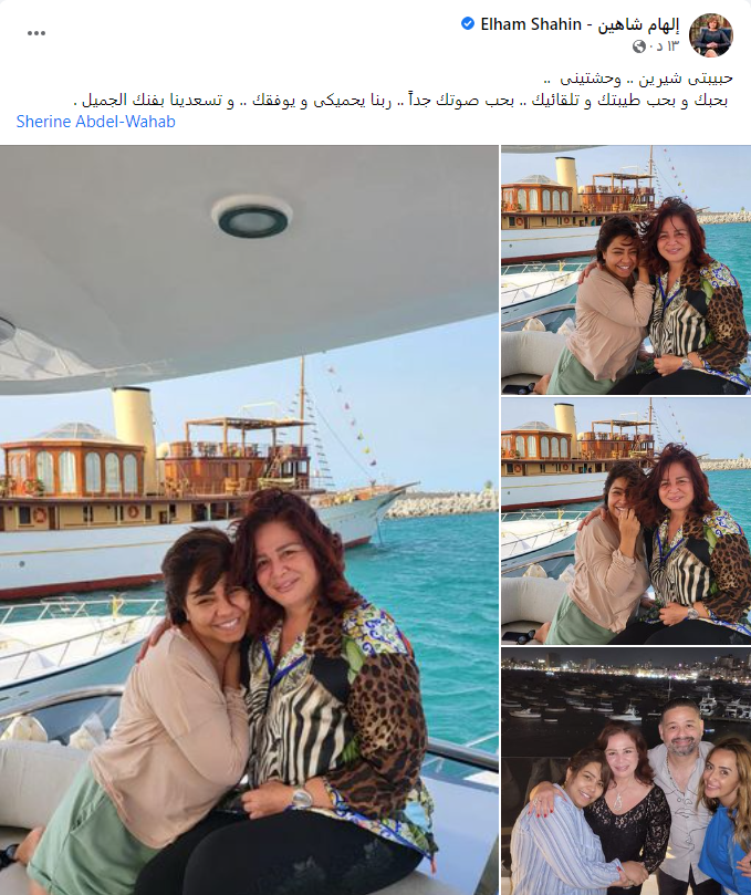 ونشرت إلهام شاهين، صورًا تجمعها بـ شيرين عبد الوهاب، عبر صفحتها على فيسبوك، وعلقت قائلةً: حبيبتي شيرين.. وحشتيني.. بحبك وبحب طيبتك وتلقائيتك.. بحب صوتك جدًا.. ربنا يحميكي ويوفقك.. وتسعدينا بفنك الجميل.