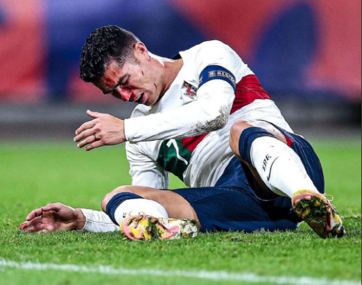 وأصيب كريستيانو رونالدو في أنفه، بعد تدخل عنيف مع توماس فاتشليك، حارس منتخب التشيك، في الدقيقة 14 من عمر شوط اللقاء الأول، ليخرج اللاعب من أرضية الملعب لتلقي العلاج ويعود مرة أخرى لاستكمال المباراة.
