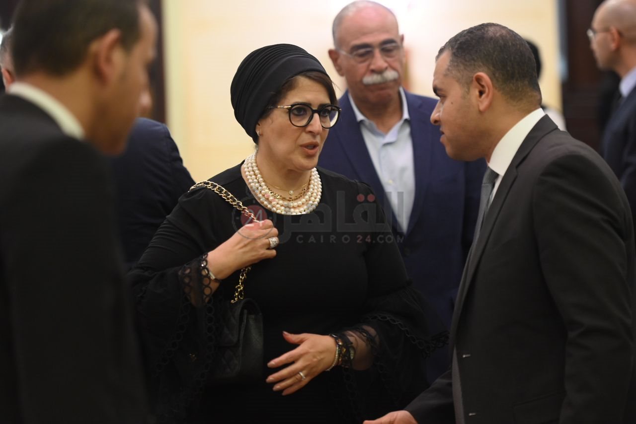 هالة زايد ومتحدث الصحة السابق يقدمان واجب العزاء في وفاة زوجة الدكتور طارق شوقي